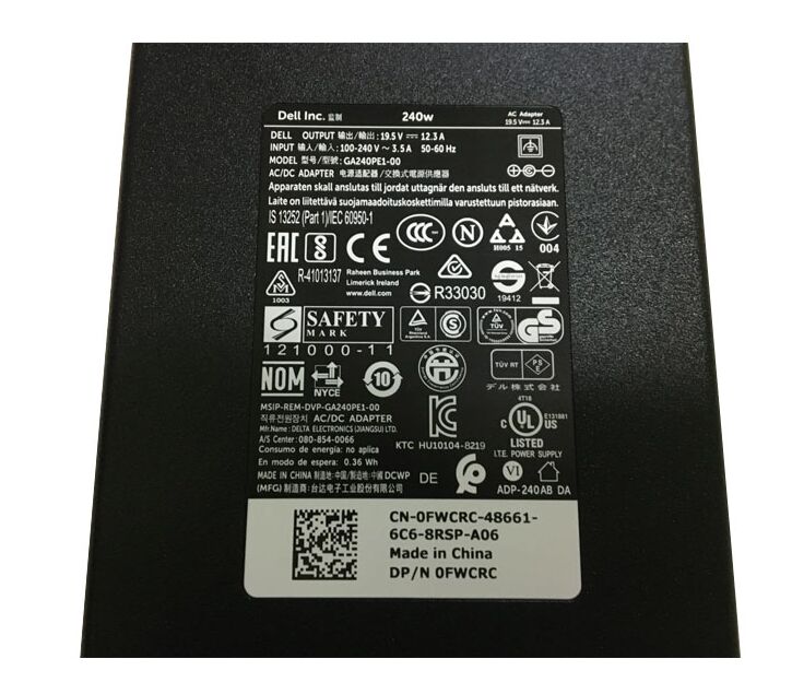 Original 19.5V 12.3A 240W Dell 00MFK9 Charger AC Adapter + Free Cord